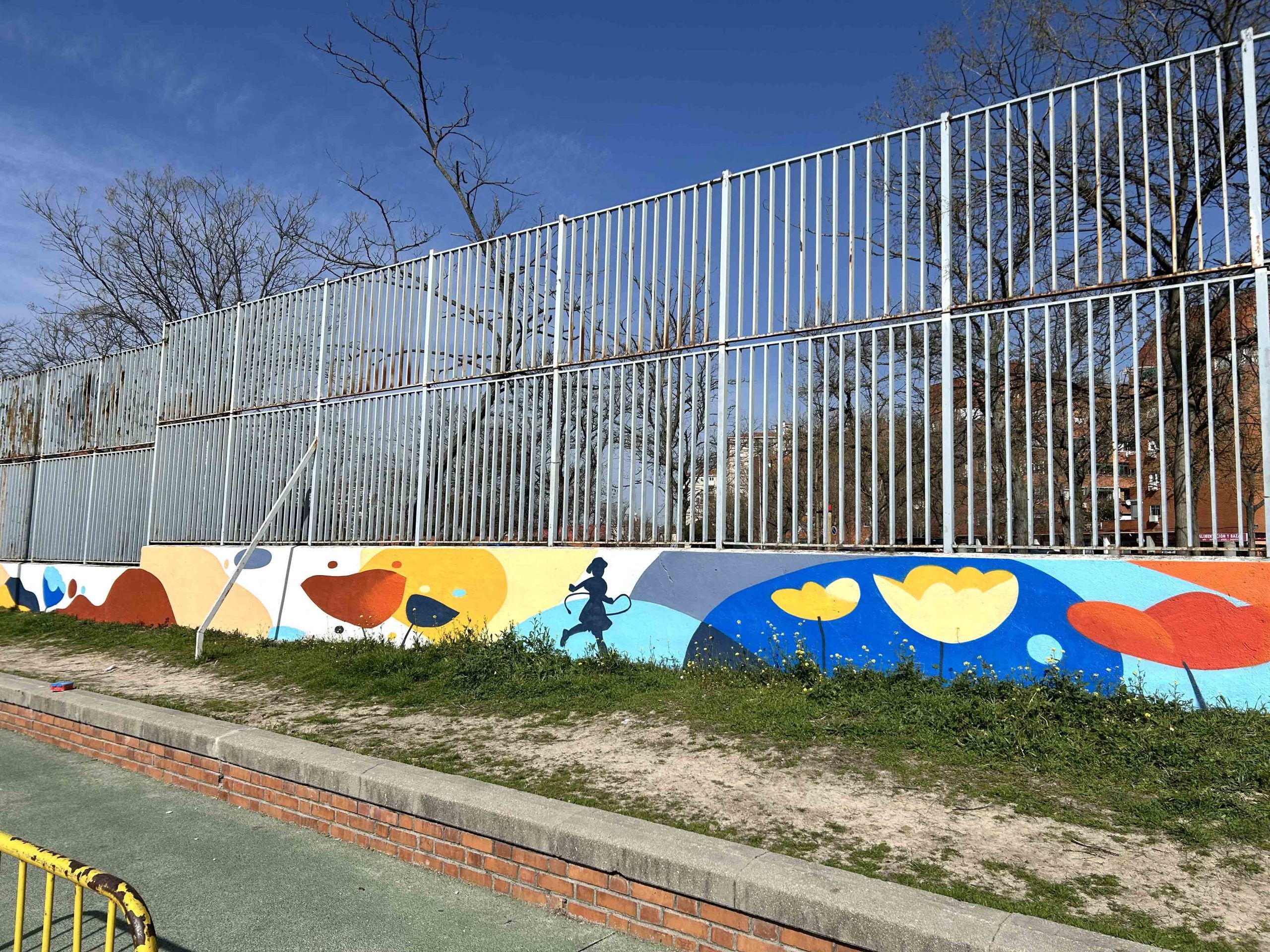 La colocación de murales en patios y otras áreas exteriores puede transformar estos espacios en entornos más acogedores y estimulantes, favoreciendo la interacción social y el juego.Los murales para colegios pueden estimular la creatividad de los niños durante el juego, convirtiendo un patio común en un lugar lleno de imaginación y creatividad. Estos espacios coloridos invitan a la exploración y al juego activo.